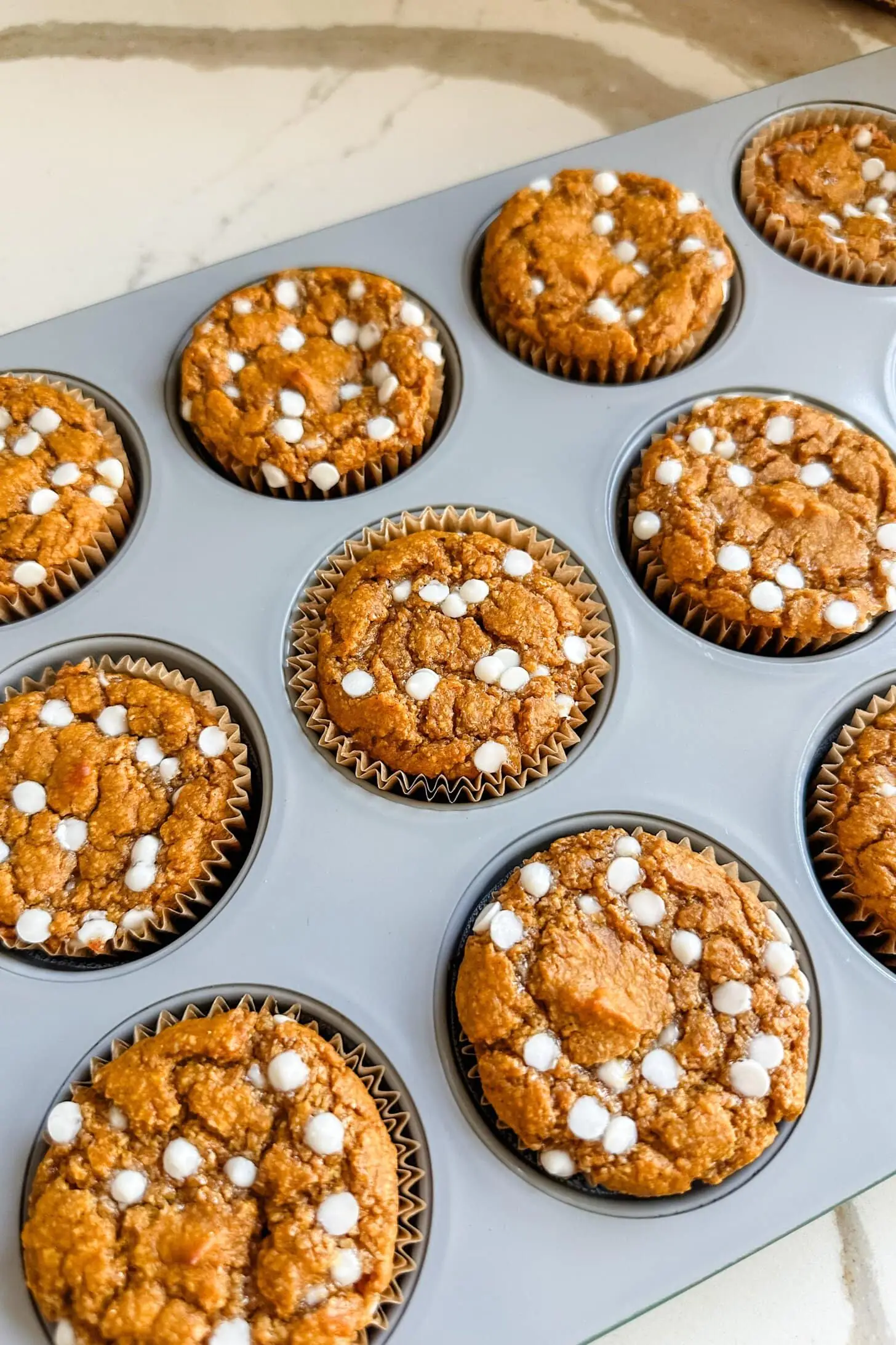 Scoop the batter evenly into 12 muffin cups. Fill each cup about ¾ full. If desired, sprinkle additional mini white chocolate chips on top for extra sweetness.